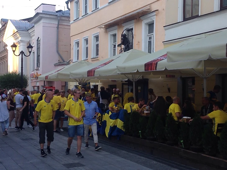 После матча шведы расслаблено сидели в барах, кафе, у своих гостиниц. Они просто наслаждались хорошей погодой и радовались успеху. Песен и кричалок было меньше – эмоции остались на стадионе.
