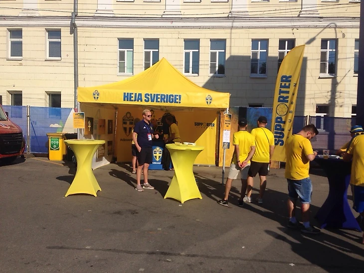 В фанзоне сделана палатка официального фанклуба: они помогают шведам с билетами на матчи и дорогой до места соревнований, а сейчас просто рисуют на лицах болельщиков национальные флаги. Корейцы также присутствуют в городе, но их значительно меньше.