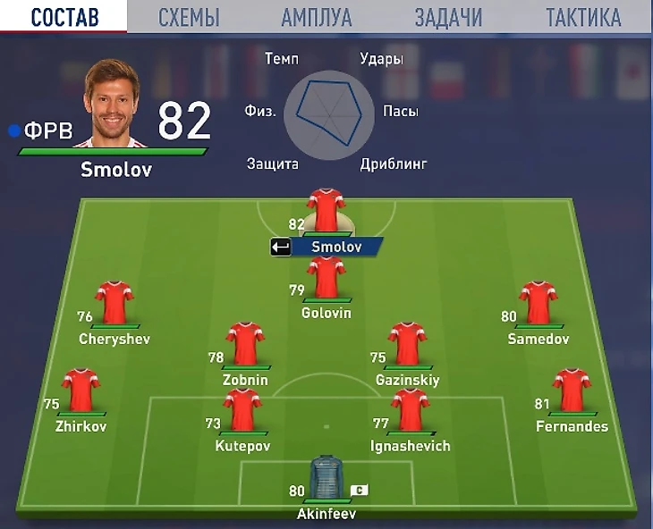 Стартовый состав я выбирал исходя после реально матча с Саудовской Аравией. Ставку сделал все-таки на Смолова. Который, кстати, в этот вечер меня не подвел.