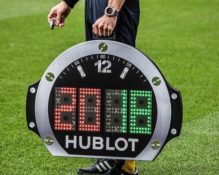 Но не только это помогает судьям. В каждом матче в конце второго тайма судья добавляет минимум пять минут. Да, это может показаться обычным совпадением, но это не так. Спонсор турнира Hublot, который вот уже как несколько чемпионатов поставляет табло и мониторит время матча, разработал специальные часы стоимостью в 5 тыс долларов для каждого судьи.