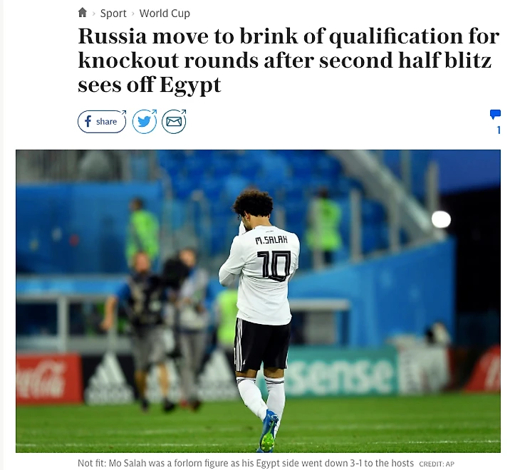 "Даже самые оптимистично настроенные болельщики сборной России боялись, что ее игроки станут мальчиками для битья. Но на самом деле команда сама наказала двух соперников. На этот раз пострадал Салах, бриллиант в африканской футбольной короне. Для него турнир закончен.