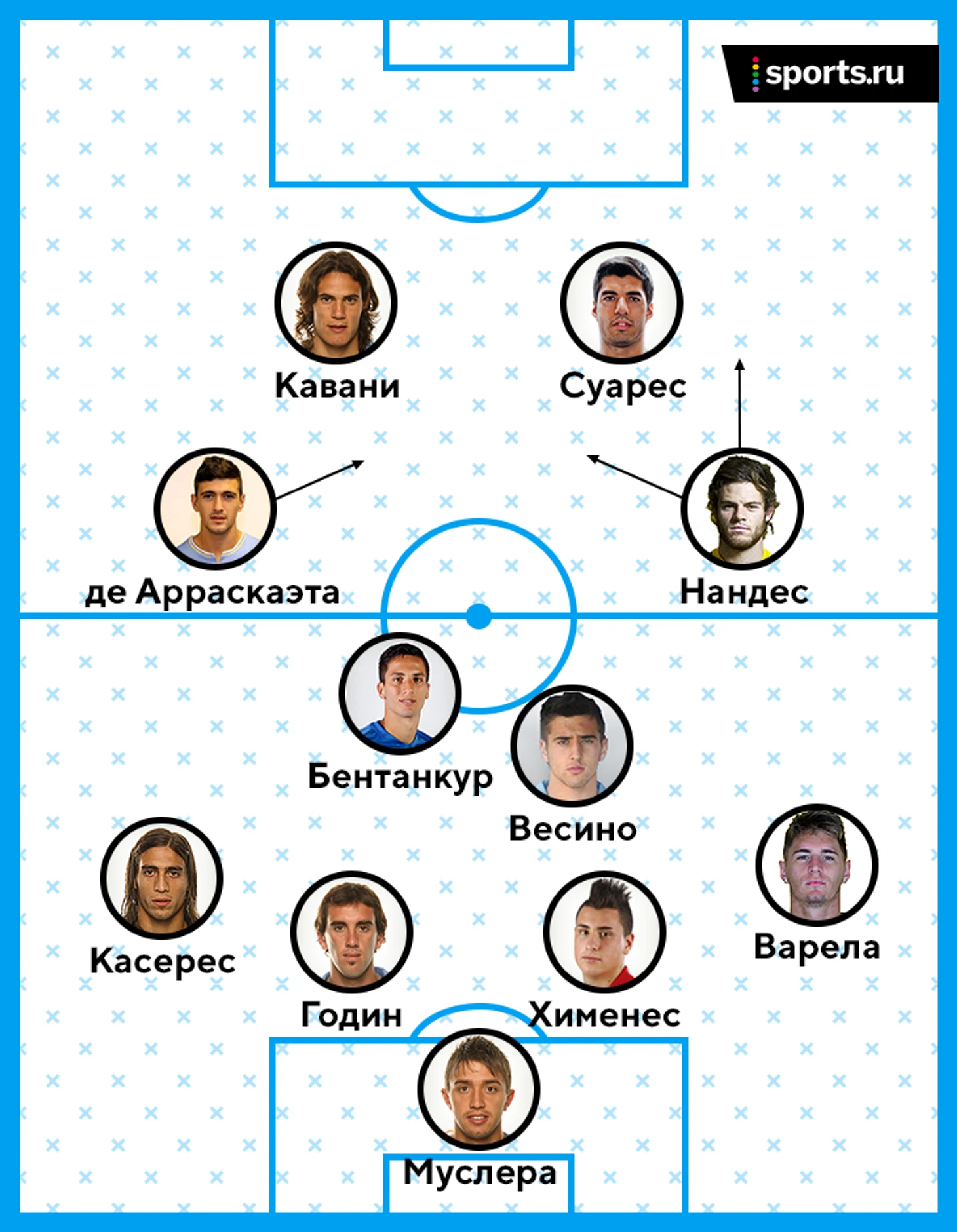 Кавани и Суарес играют вместе за сборную почти 10 лет. На двоих они положили почти сотню голов за Уругвай (51 – у Суареса, 42 – у Кавани). Они мастерски взаимодействуют и могут созидать даже без участия партнеров. «Мы понимаем возможности Суареса и Кавани. Все, кто играет под ними, адаптируются под их сильные качества. Для нас счастье играть с ними. Если мы хорошо доставляем им мяч в зону около штрафной соперника, их практически невозможно остановить», – объяснял де Арраскаэта.