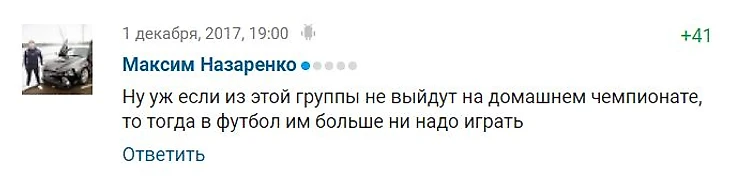 — все одиннадцать экспресс-мнений одиннадцати человек, безусловно, не последних, выбранных мной просто по случайному принципу первой попавшейся за эту дату новости, показывают, что даже когда ещё жеребьёвочные шары не успели остыть, все высказывались в примерно одинаковом ключе: группа лёгкая, должны выходить, играть уверенно.
