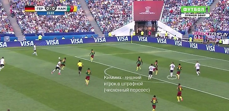 Киммих помогает и в завершающей стадии атаки, классно заполняя чужую штрафную. Это качество свойственно и латералям в схеме 3-5-2, и самому Киммиху, умеющему здорово выбрать позицию, отклеиться от защитника: в «Ростове» об этом наверняка помнят. В сборной Германии его включения происходят так – Киммих отдаёт передачу одному из атакующих полузащитников и резко ускоряется в штрафную, пока товарищи по команде готовят перевод налево.