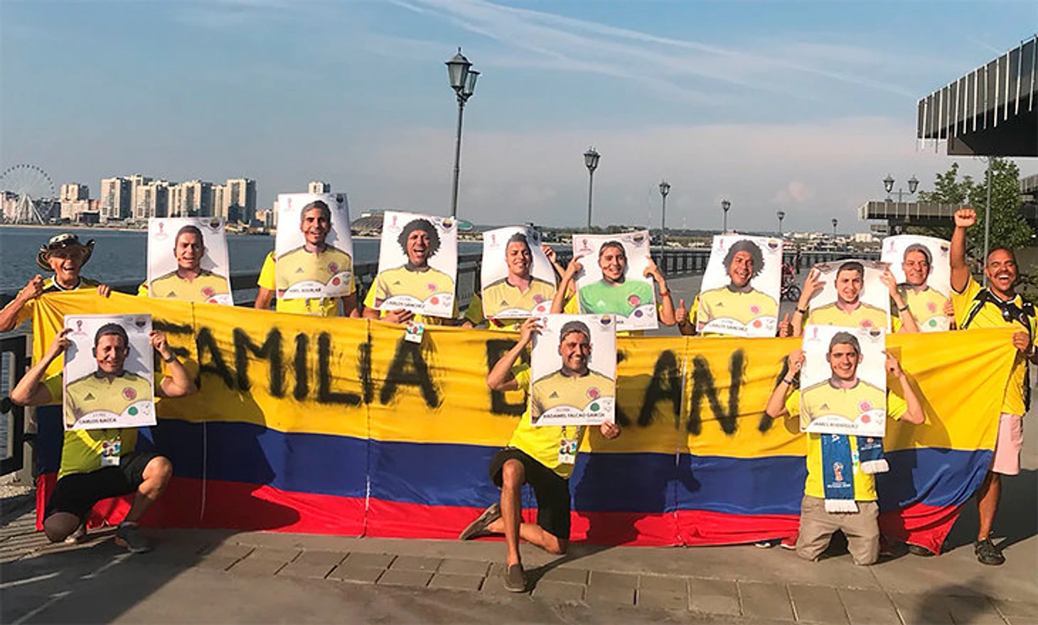 Карточки-2014 оставили у стадиона после поражения в 1/4 финала от Бразилии, чтобы не тащить домой в Колумбию, а новые напечатали уже в России. Везти из дома – сложно и небезопасно, хрупкие картонки помнутся и потеряют форму. Плюс не хотелось везти громоздкие вещи в чемоданах. Например, длинный флаг, за которым поместятся минимум 10 человек, они распилили на шесть частей, разложили по сумкам и собрали в России при помощи липучек.