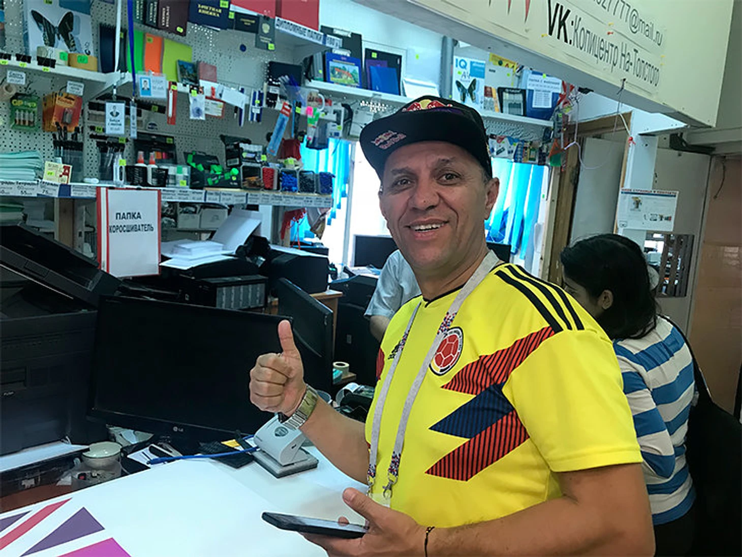 Хорхе рад, все получилось. Он настраивает Николая болеть за Колумбию: «Теперь вы должны быть за нас, и если победим – это будет наша общая победа. Вашу работу увидят болельщики со всего мира». Николай согласен – он спросил, на каком ряду ему искать новых друзей во время трансляции, и добавил, что почти колумбиец, потому что занимается в военном ансамбле песен и плясок и обожает двигаться под музыку. Услышав это, Хорхе поджал локти и показал несколько движений. Так в Казани родилась дружба русского копировальщика и колумбийского бизнесмена.