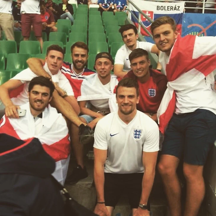 Защитник сборной Англии Харри Магуайр позвал друзей на матч с Панамой (6:1). Пару лет назад на Евро он почти в этой же компании смотрел игру англичан против Словакии с трибун как обычный фанат – его «Халл» только-только выбрался в премьер-лигу, и до сборной Харри было далеко.