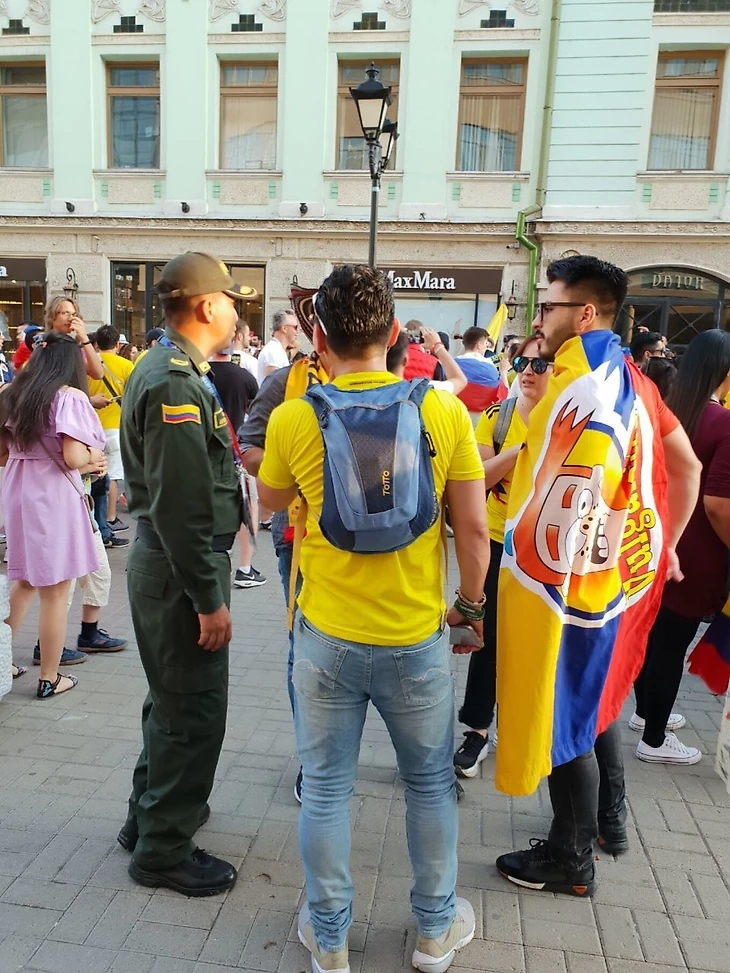 Колумбийская полиция помогает казанским полицейским в обеспечении порядка и следят за своими фанатами.