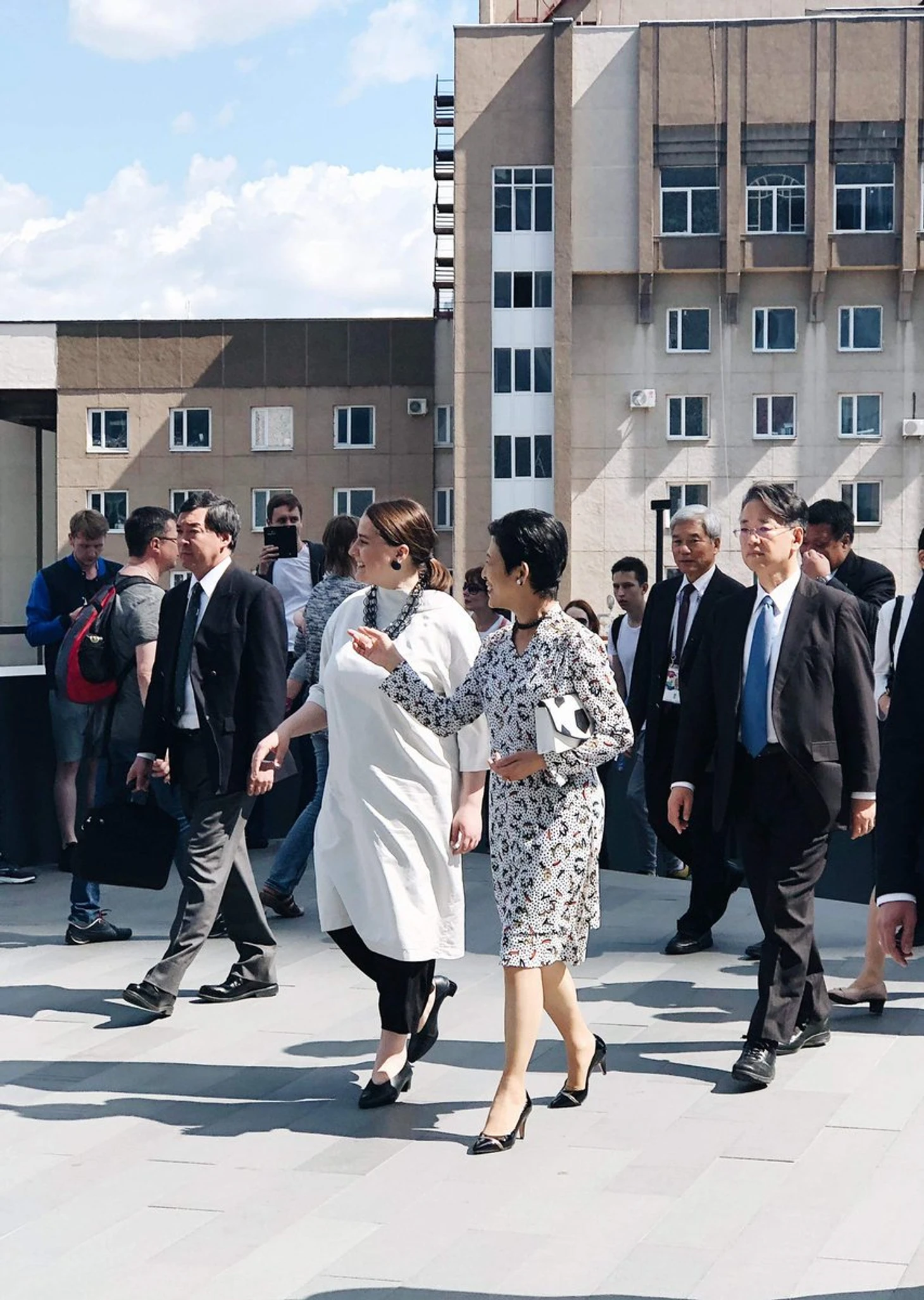 Уже заканчивая осмотр, я буквально нос к носу столкнулся с японской принцессой Хисако Такамада. Никогда я не был так близок к монаршей особе. Вообще представители императорской семьи Японии не были в России 102 года. И только футбол стал поводом к визиту принцессы. Первым городом стал Саранск, где Япония выиграла у Колумбии, а накануне Екатеринбург, где ее соотечественники играли с сенегальцами. Источники сообщили мне, что город и Ельцин Центр принцессу просто потрясли.