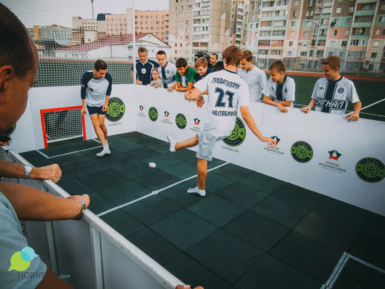 А вот русские ребята придумали правила, создали специальные площадки и проводят турниры по флэтболу по всей стране. Уже даже успели показать игру представителям FIFA. Теперь площадки для флэтбола будут установлены на стадионах во время Чемпионата Мира 2018 и абсолютно любой болельщик сможет выйти на корт и на пару минут представить себя Месси или Рональдо. По личному опыту скажу, что 2 минуты игры выматывает, как теннисный сет, настолько активно приходиться перебирать ногами, пытаясь забить и одновременно не пропустить.