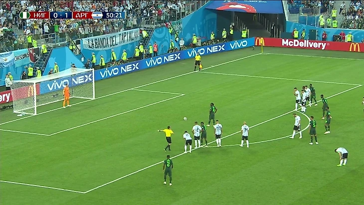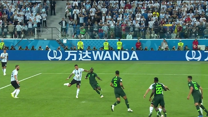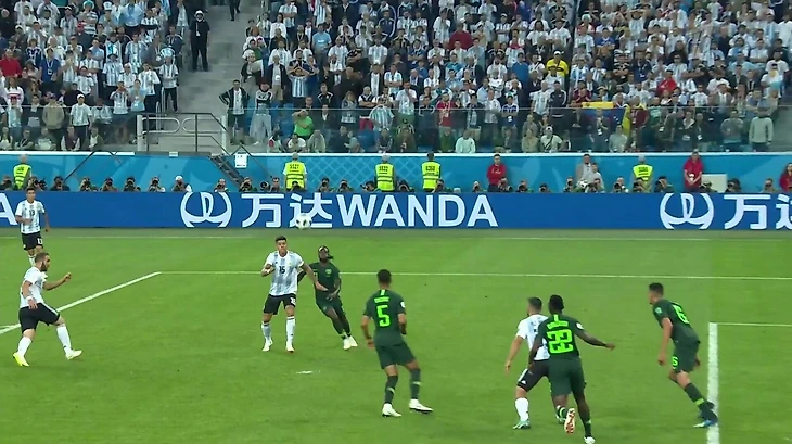 Во втором тайме команду Месси ожидало нелегкое испытание. Спустя 5 минут после выхода на поле, главный арбитр встречи назначил в ворота Аргентины сомнительный пенальти. Мозес сравнял счет в матче. И пришлось начинать все сначала.