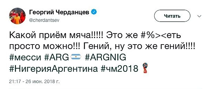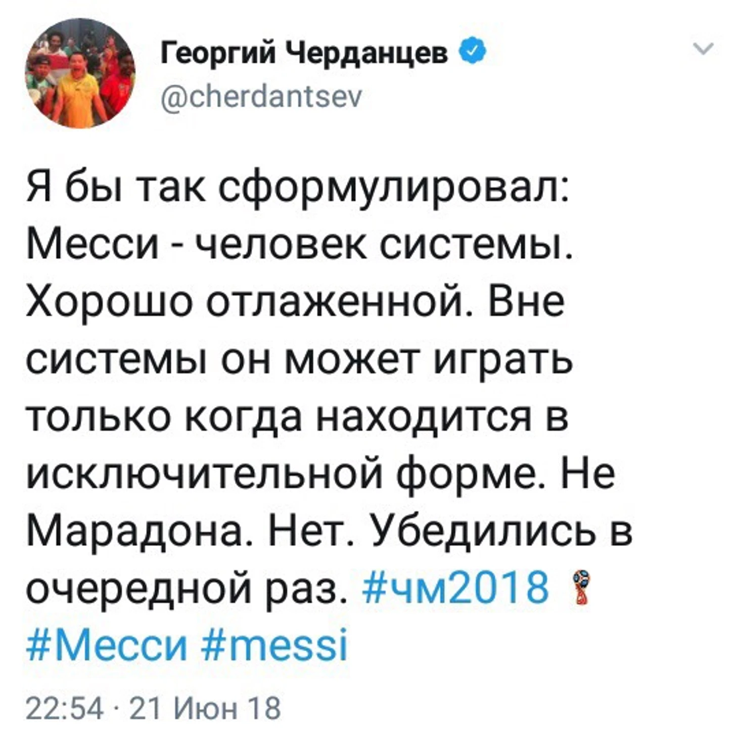 Реакция Черданцева на игру Месси. Он снова «переобулся»