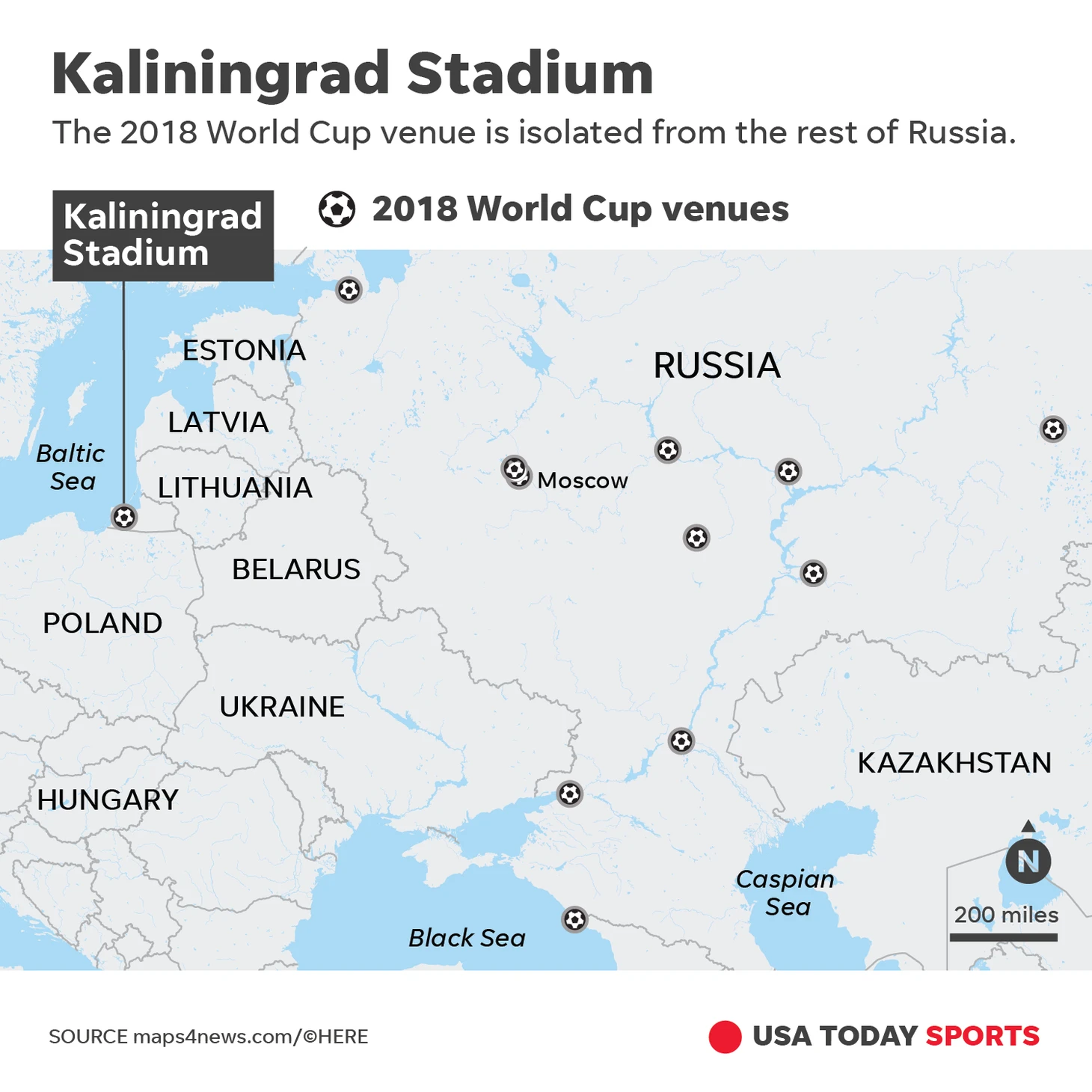 Калининград – лишь 40-й по населению город России, и он не может похвастать элитной футбольной родословной. Местный клуб «Балтика» не выступает в сильнейшем российском дивизионе - российской Премьер-лиге. И все же чемпионат мира до сюда добрался, вне зависимости от того, рады ли этому местные жители, и какие бы тому ни были обоснования в плане географии, политики… и решений Путина.