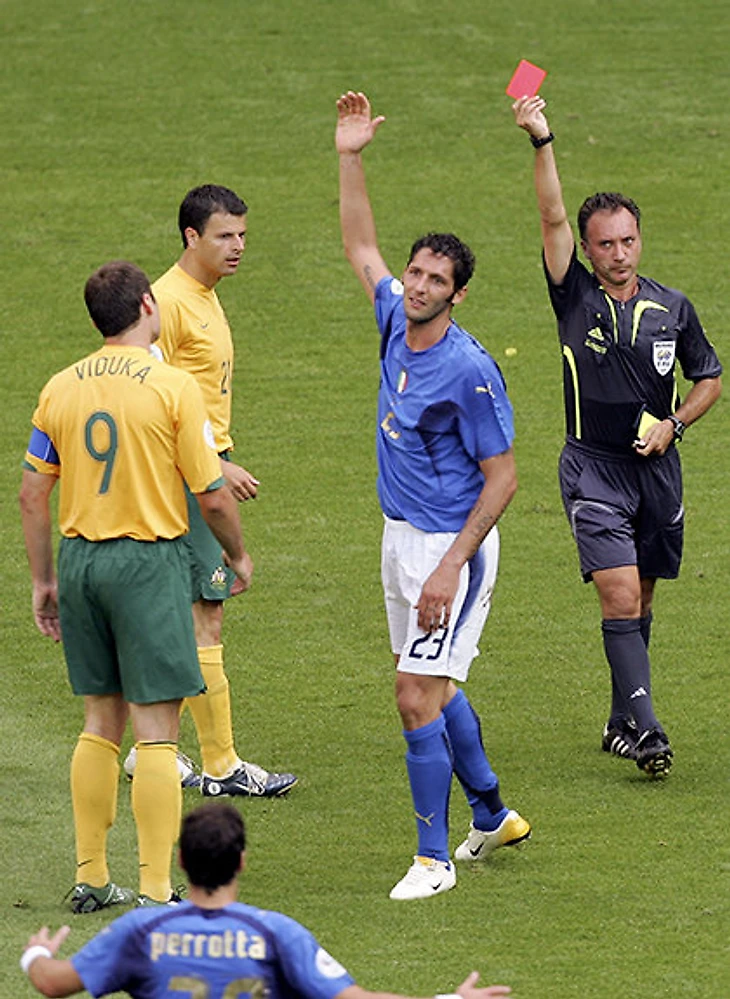Присутствие Гуса Хиддинка на скамейке – дурной знак для итальянских болельщиков. Но самое страшное было впереди. Сразу после перерыва испанский арбитр показал Марко Матерацци красную карточку – в эпизоде, когда не каждый судья решился бы достать даже желтую. Играть оставалось около 40 минут. Теперь на жаре, да еще оказавшись в меньшинстве, итальянцы не выдержат натиска Видуки и Ко.