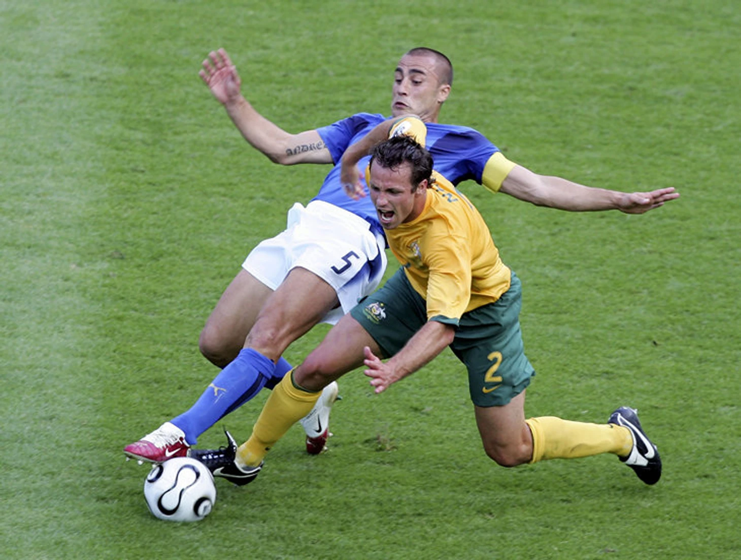 У Фабио Каннаваро был скромный для центрального защитника рост – всего 175 см. Из культовых коллег по амплуа только Франко Барези обладал схожей комплекцией. Однако они оба компенсировали недостаток роста игрой на опережение и стартовой скоростью. Каннаваро так быстро разгонялся, будто им только что выстрелили из баллисты. Его прекрасно дополнил Марко Матерацци, который после травмы Алессандро Несты занял место второго центрального защитника. Эта парочка идеально подходила друг другу: Фабио разбирался с соперниками благодаря чтению игры и скорости, а Марко – за счет роста, хитрости и физической мощи.