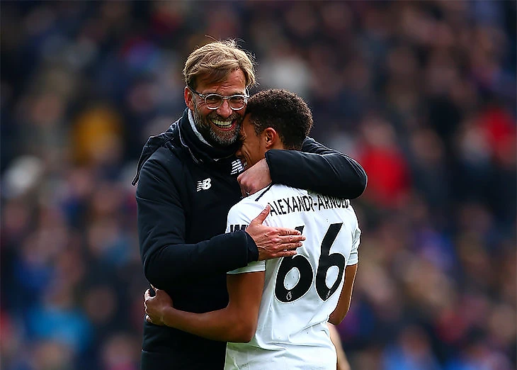 Через год Трент начал постоянно тренироваться с основой. Он сыграл пару матчей в предсезонке, выскочил в первом матче в Кубке лиги (с «Тоттенхэмом») и так понравился Клоппу, что вскоре вышел в основе на матч с «Манчестер Юнайтед».