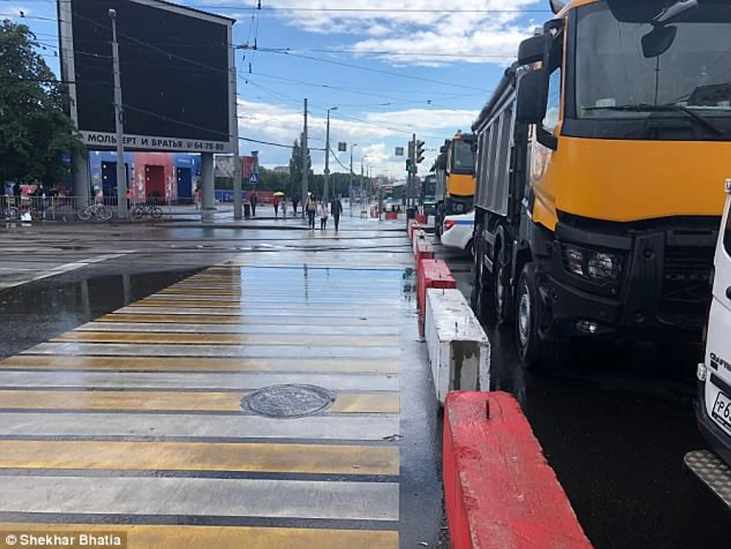 Фан-зону огородили бетонными заграждениями, чтобы какой-нибудь фанатик не смог при помощи бомбы, заложенной в грузовике, спровоцировать хаос, когда болельщики, которые не обзавелись билетами, будут наблюдать за матчем на гигантском экране в четверг вечером.