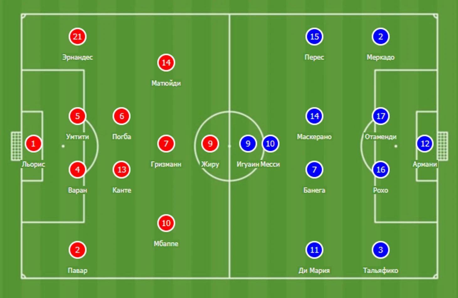 Франция никогда не обыгрывала Аргентину в истории. Сейчас отличный момент для команды Дешама переписать историю и подтвердить свои амбиции на полях России. Вряд ли аргентинцы смогут за несколько дней преобразиться и показать хороший футбол.