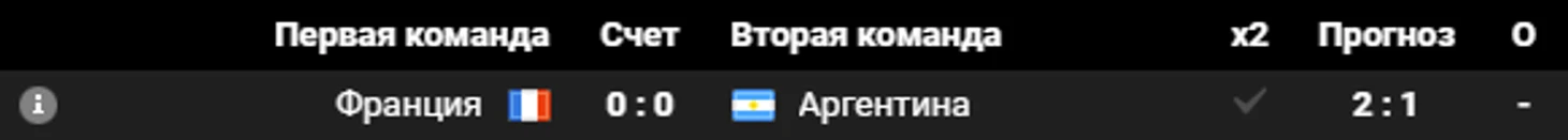Пока арги в поте лица пробивались в 1\8, французы отдыхали и копили силы. Плюс арги одни из самых возрастных на турнире, это должно сказаться в концах таймов. Возможно, что и четырех ;-)