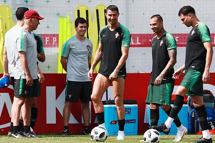 Перед Уругваем Роналду тоже начал заранее. На тренировке он поглядывал на фотографов, громко смеялся и даже танцевал. А потом предельно подвернул шорты (кстати, скоро в таких снова будут играть в футбол) и втянул Пепе и Куарежму в игру: нужно было из-за лицевой линии закрутить мяч в ворота. Никто, кроме Роналду, этого не смог.