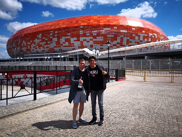 К назначенному времени подошёл только Джоэль. Оказалось что Марсель через соцсети заобщался со своими знакомыми, которые сейчас тоже в Саранске. И сейчас они где-то вместе гуляют. Ну, благо контакты есть, не пропадёт. Мы с Джоэлем отправились покупать сувениры для его многочисленных родственников. Он стал мне рассказывать про свой родной город, про семью, про любовь к Родине . А затем попросил чтобы я выучил одну песню, хотя бы пару строк. Оказывается, что у перуанцев очень много песен посвящённых Родине, и призывающих отдавать все силы для достижения цели. На стадионах, каждый матч они поют от 5 до 7 разных песен, и вот эта - самая популярная, после гимна. Ну хорошо, друг, я постараюсь! Canta Blanquirroja esta cancion, de corazon..Извини, Джоэль, больше не могу, дальше там реально сложные для произношения слова идут. Но и этого хватило, чтоб он заключил меня в крепкие мужские объятия! Он сказал, что теперь я тоже стал Blanquirroja (красно-белым).Кстати, зря меня он этому научил! Теперь эти строчки стали грозным оружием в моих руках! Перед матчем ,возле стадиона я подходил к иностранным болельщикам, и запевал эту песню. Ну, знаете, такая проверка на перуанство. Если продолжат петь за мной ,значит они тоже истинные бланкорохос ! В общем, если услышите как иностранцы говорят, мол эти русские- немного crazy, знайте, что часть «заслуг» принадлежит мне.