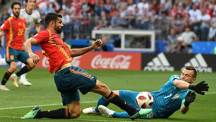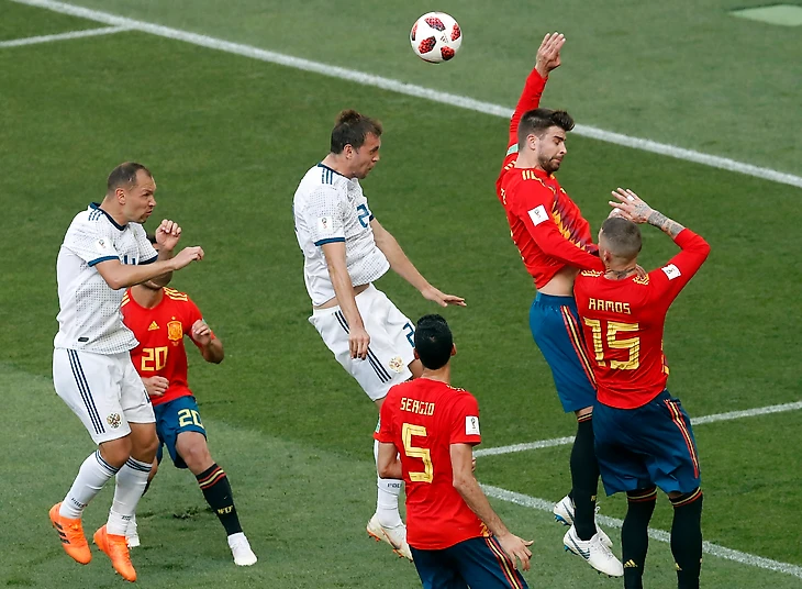 Все 100 минут испанцы катали мяч и не могли создать ни одного момента. Защита России, а в особенности Фернандес, уничтожала все их попытки подойти к штрафной. За это нужно поблагодарить Черчесова, который решил сыграть в пять защитников. Конте таким же способ выбил испанцев два года назад.