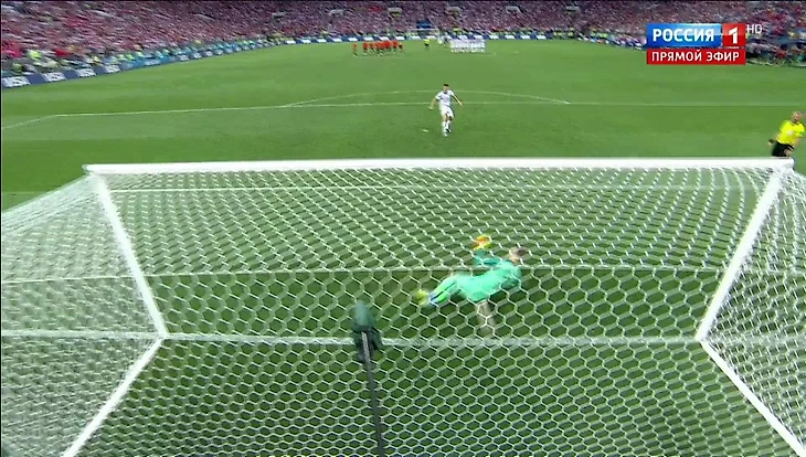 Когда Лука подбегает к мячу, вратарь датчан, разве что не лёг в левый от себя угол ворот. Модрич этого не замечает.Кстати, в серии пенальти Модрич пробивал уже по центру. И этот мяч Шмейхель едва не отразил ногами. Подхватил невезение у де Хеа?