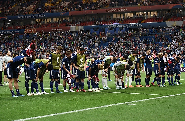 Спасибо им за турнир, за захватывающий футбол без автобуса с соперником, превосходящим их по классу, и, конечно, же за поведение: и футболистов, и болельщиков. Футболисты сборной Японии вели себя на поле, пожалуй, достойннее всех. Не было никаких симуляций, грубости, хамства, беготни вокруг арбитра с целью дать сопернику карточку или воспользоваться видеоповтором. Ничего такого и близко не было, все решения принимали с достоинством и по-мужски, воистину великая нация!