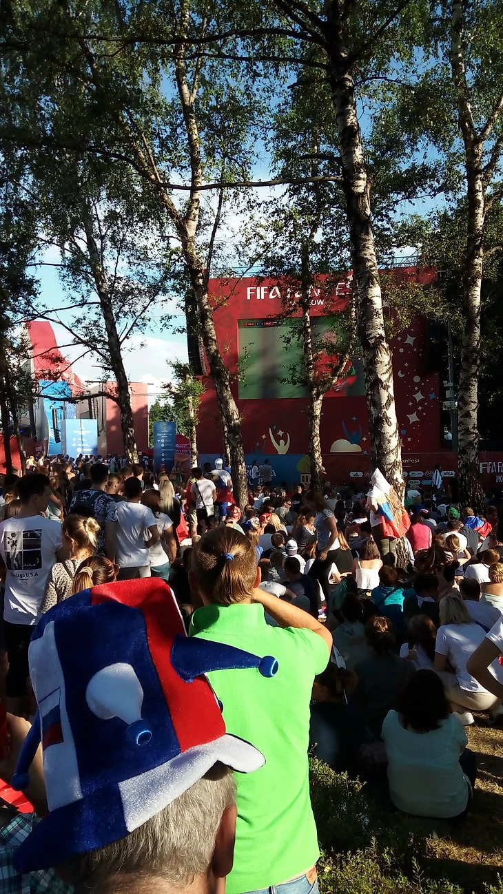 В эти 15 минут стоял в очереди , чтобы купить попить, но народу было столько что простоял я в итоге 25 минут, матч уже начался, пошел смотреть в уютное место, сбоку фан-зоны, там кстати было веселее, и уровень алкоголя в крови тоже был выше, видимо поэтому.)