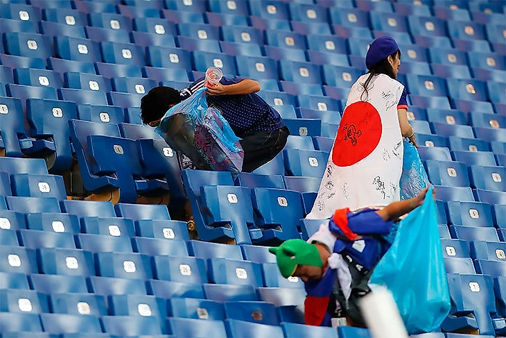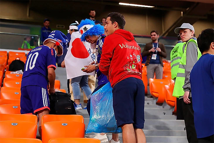 Но главный пример того, как нужно вести себя везде – и дома, и в гостях – показали японцы, которые после каждого матча убирали за собой мусор на стадионе.