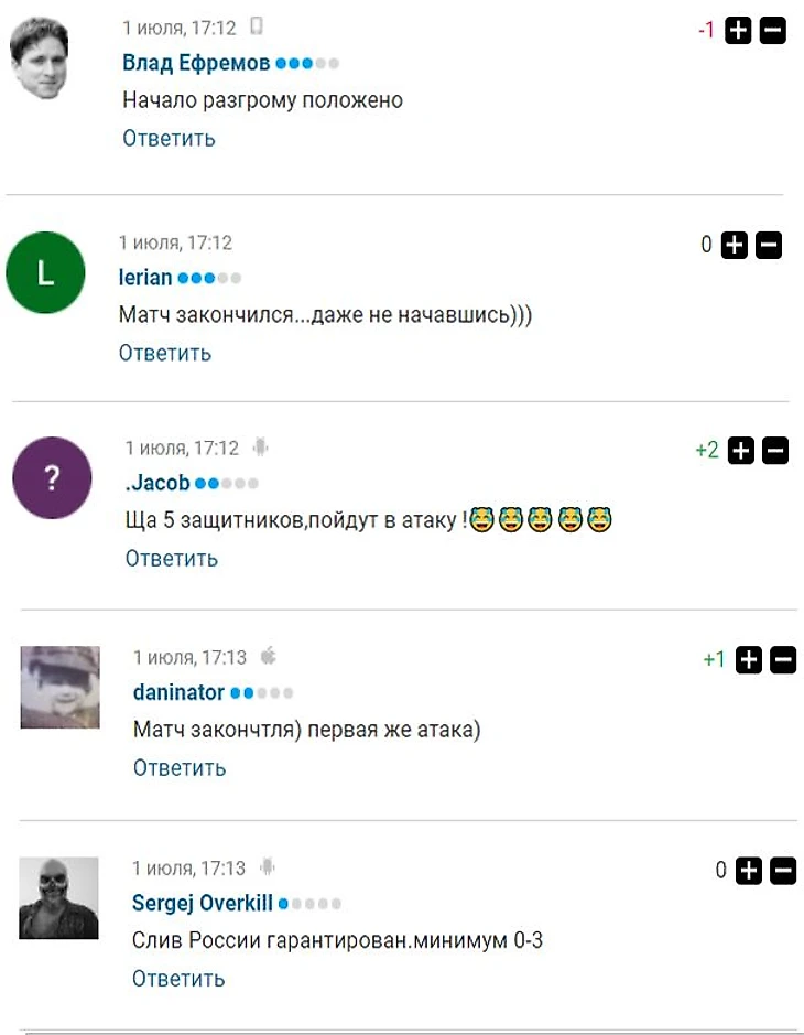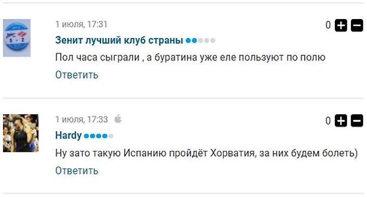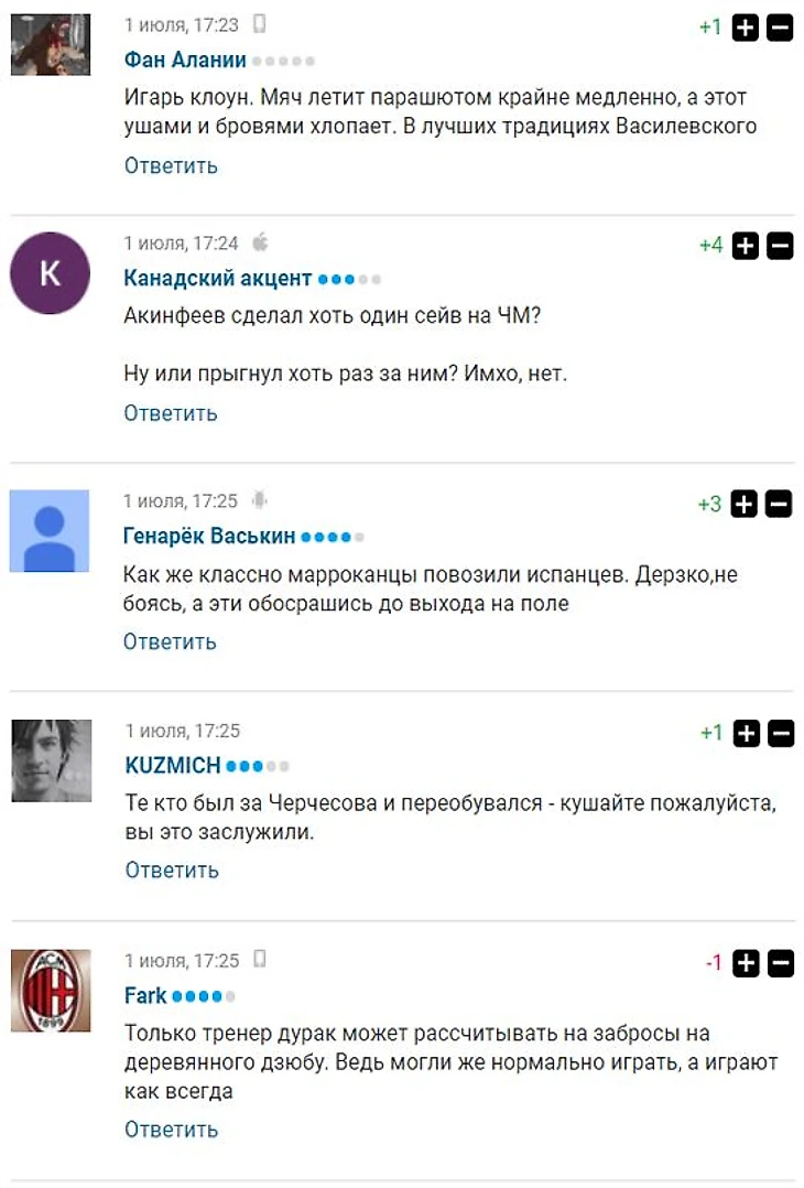 Мне стало интересно почитать каменты при счёте 0:1 в пользу Испании. И, как мне кажется, некоторым здесь присутствующим должно быть немножко стыдно.