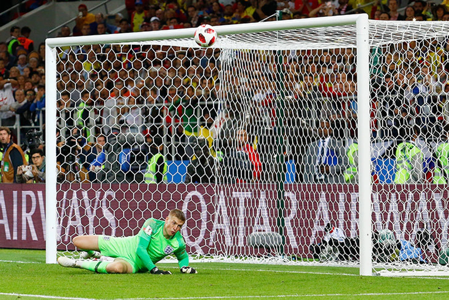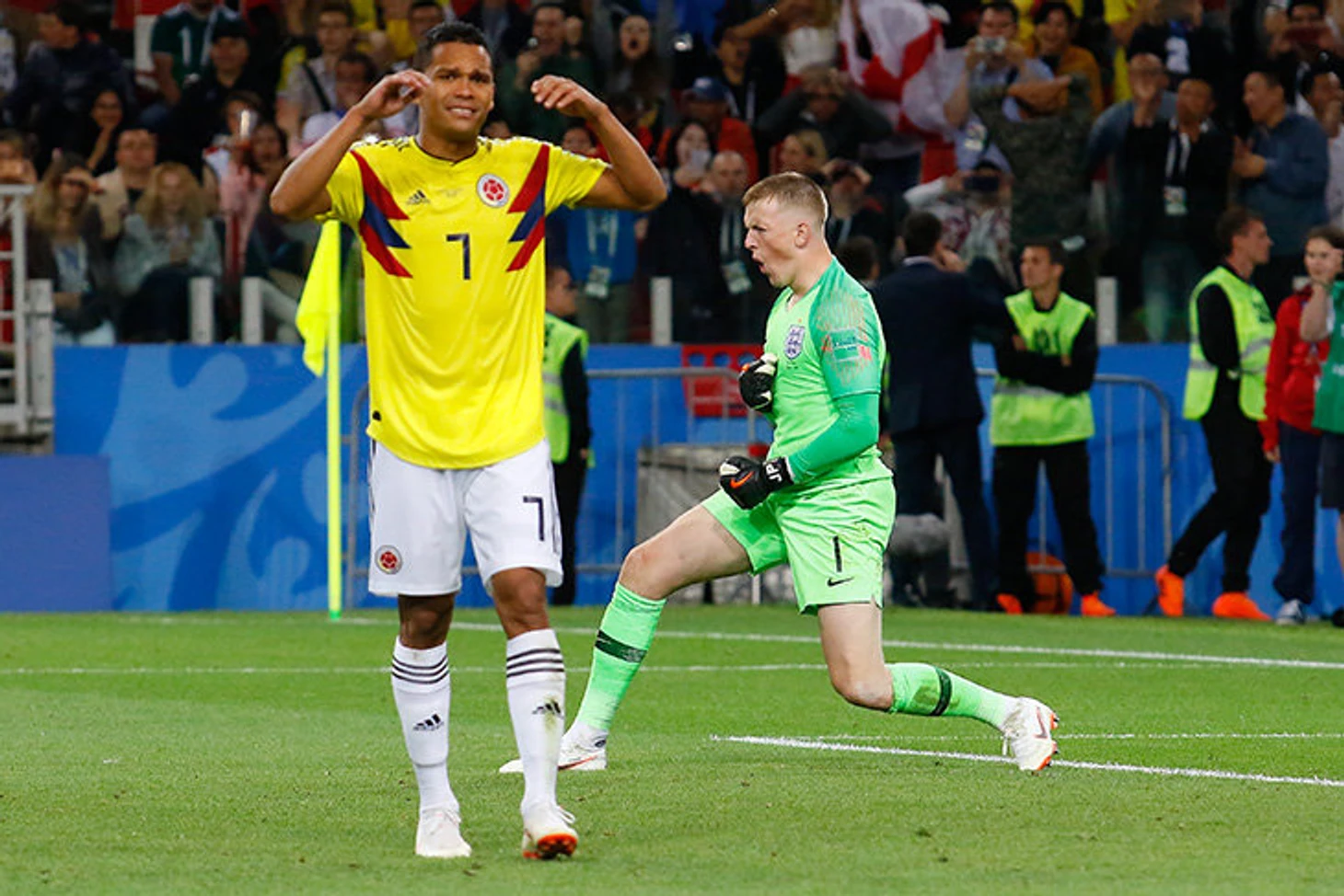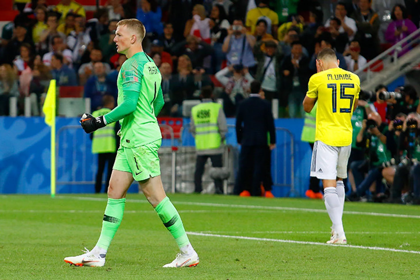 Невозможно представить, с какими мыслями 24-летний Джордан Пикфорд подходил к воротам. Даже у человека с самой железной выдержкой проскочила бы мысль про проклятье пенальти. Добавьте к этому окружающий гул и свист: кучка болельщиков Англии и так была в разы меньше армады колумбийцев, а еще и осталась на противоположной стороне поля, так что справляться с ударами Пикфорду предстояло в южноамериканском реве.