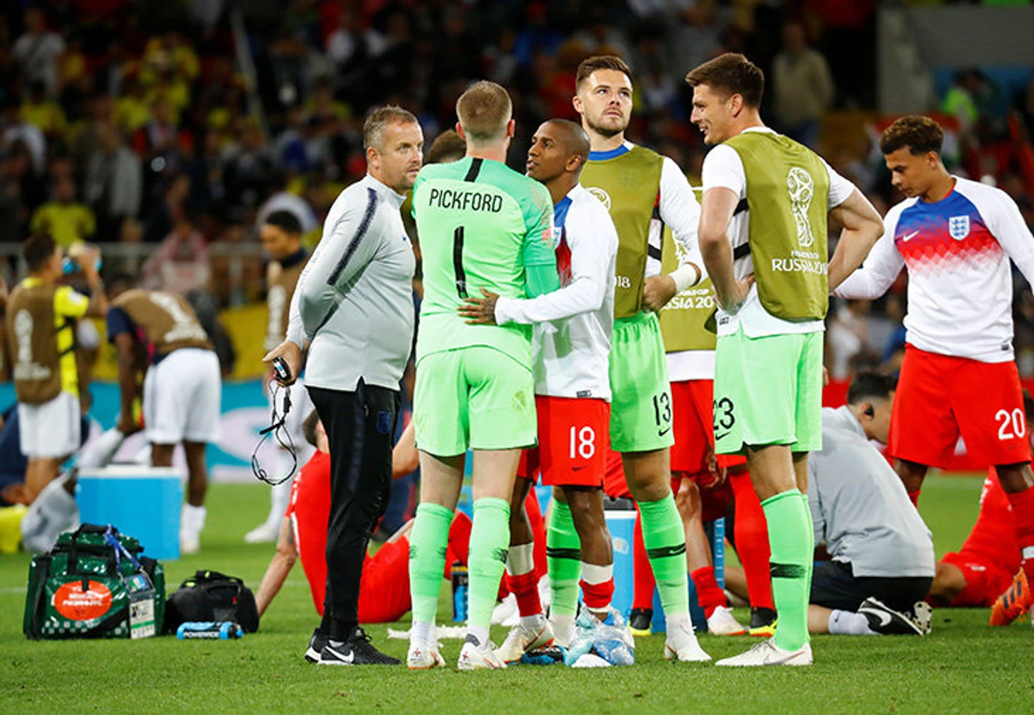 За несколько минут до серии пенальти Гарет Саутгейт собрал вокруг себя команду. Пока все внимательно слушали напутствия тренера, запасные вратари встали по бокам от Пикфорда и заботливо подсовывали ему бутылку с водой, накидывали на плечи полотенце.