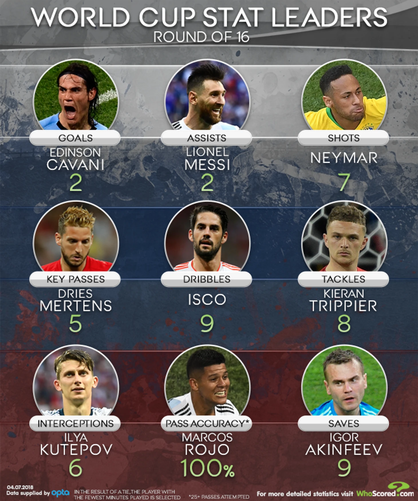 Лучшие игроки 1/8 ЧМ 2018 по различным показателям от WhoScored