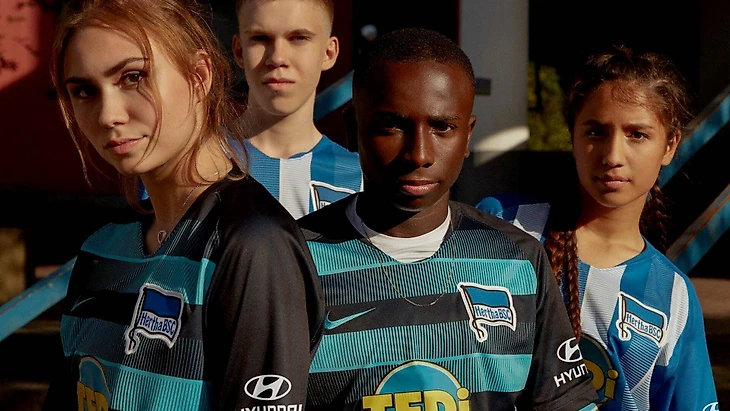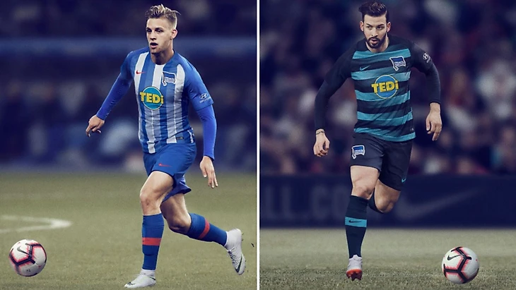 В этом сезоне домашняя футболка выполнена в традиционном дизайне. Бело-синие горизонтальные полосы. Но стоит отметить, что американский экипировщик в этот раз наконец проявил фантазию, добавив немного разнообразия, при выполнении дизайна полос. Теперь они разбавлены различными вкраплениями. Выездной комплект выполнен в также в виде полос. Но теперь уже поперечных. Такие полосы на форме "Герты" не присутствовали уже больше 10 лет.