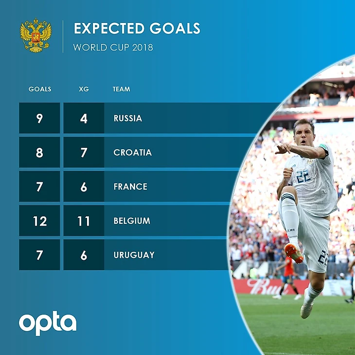 Сборная России забила на турнире уже 9 мячей, но по модели Opta смогли набрать лишь 4 xG.