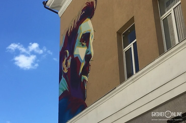 На стене школы №1, напротив отеля «Мираж», появилось изображение Неймара. Перед матчем с Бельгией сборная Бразилии прибыла в Казань: