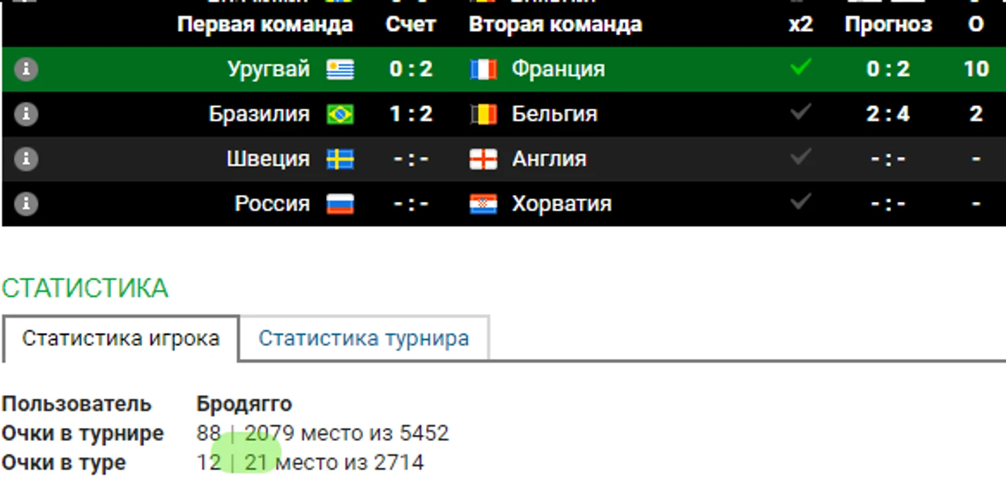 И очень рад, что не полез сюда с удвоением. По факту всего 2 человека в Лиге ОКЗ ЧМ угадали Бельгию, а один из них идет по жизни широким маршем вот так: