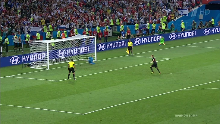 А вот Игорь Акинфеев направление удара угадал целых ТРИ РАЗА! Да, это действительно вратарь-пенальтист, пусть даже отразить из этих трёх ударов сумел лишь один. Не угадал он только два последних удара от Виды и Ракитича. И если удар Виды был неберущимся, то бьющий последним Ракитич здорово научился обманывать вратаря, хотя пробил ТОЧНО ТАКЖЕ как и в матче с Данией. Да, у этого хорватского парня просто железные нервы. Не зря он бьёт пенальти последним.