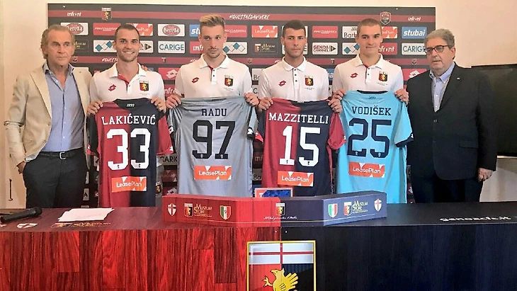 Слева направо: правый защитник Иван Лакичевич, вратарь Ионуц Раду, полузащитник Лука Маццителли, вратарь Рок Водишек. Новички определились с игровыми номерами.
