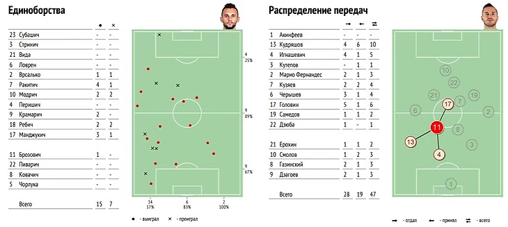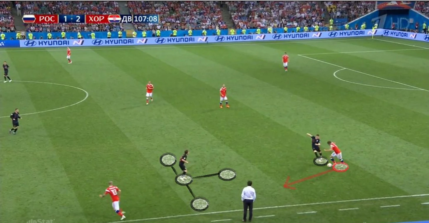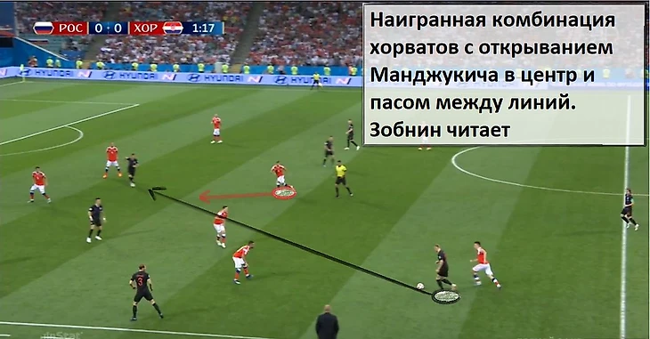 Но главная фишка Зобнина — его чтение передач. Порой он оставлял у себя за спиной Крамарича или Модрича, но чаще всего действовал великолепно, заранее читая передачи хорватов.