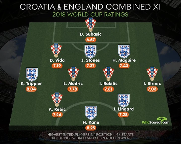 Комбинированная сборная из игроков Хорватии и Англии от WhoScored