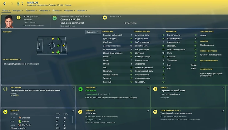 Марлос - бразилец и довольно техничный. Марлос феерит со времен Металлиста Маркевича, которые в КУЕФА/ЛЕ себя отлично проявлял. И его возможности очень точно ограничены и отображены психологией и тактикой - чтением игры, принятием решений и концентрацией.