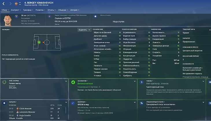 Что уж говорить про российских игроков. Одному из самых опытных защитников России, Сергею Игнашевичу, ресерчеры нарисовали неприличные 11 в графе отбор. Понятно, что Сергей Николаевич уже не так быстр и вынослив, как десяток лет назад, но отбирать мяч он по-прежнему умеет...