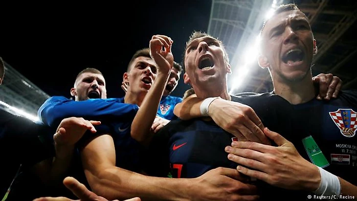Выходя на поле, ты властвуешь, - "Внимание, Франция выходит на поле и открывает огонь". Хорватия выходит на поле и залезает на крест.