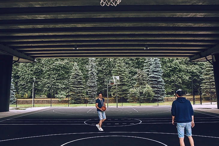 Даже во время дождя было чем занять себя: спрятавшись под путепроводом и обнаржив пустые баскетбольные площадки, я умудрился найти мяч, поэтому немного "изменили" самому важному в эти дни виду спорта:)