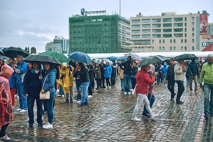 Внутри из-за дождя люди сжимались ближе к зонтам, где было теплее во всех смыслах.