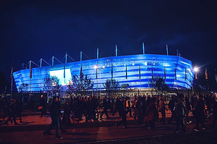 Но это была только разминка, впереди нас ждал матч на стадионе!Стоит отметить само сооружение: неплохая архитектура (особенно вечером), он самый невместительный из всех, зато очень компактен - поле как на ладони.