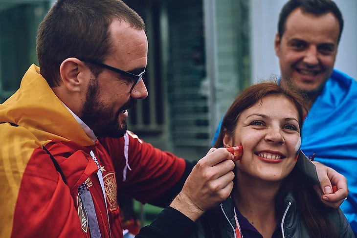 Весь центр города был красный от флагов обеих стран и весел от непрекращающейся радости болельщиков. Не улыбаться было не возможно:)