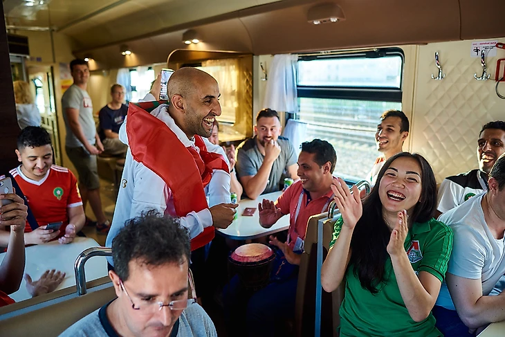 Я для себя сразу решил, что болею за Испанию. К моему удивлению, испанцев в поезде то ли не было, то ли они не высовывались, поэтому в вагоне-ресторане, как в центре притяжения всего поезда, царила по-истине марокканская атмосфера. У сборной Марокко шансов на выход из группы уже не было, это был их заключительный матч, наверное поэтому их болельщики отдыхали как в последний раз:)